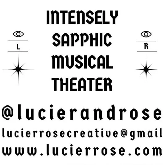 Lucier&Rose are a musical theatre writing duo who strive to break the boundaries of the medium in the name of genuinely queer, invitingly innovative storytelling. The pair consists of S.C. Lucier, who begins and ends in words, and Meghan Rose, who begins and ends in music. They redefine "collaboration" for all the parts in the middle.